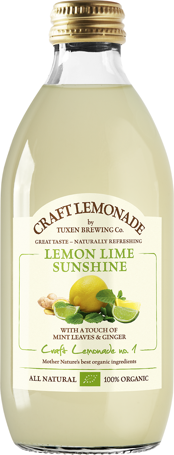 Craft by Tuxen Brewing Co. laver økologisk gourmetlemonade, der er pæredansk. Lemon Lime Sunshine er en herlig, forfriskende citron- og limelemonade med et skønt strejf af mynte og en smule ingefær.